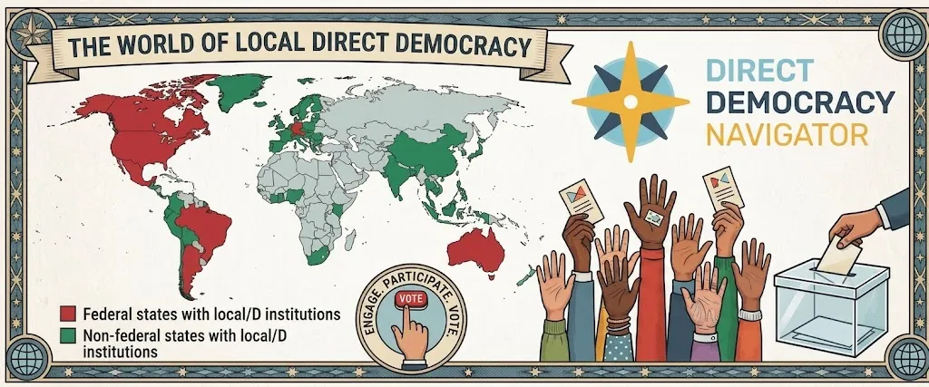 Doch es gibt auch andere Entwicklungen: weltweit wächst die Praxis der direkten Demokratie – vor allem auf der lokalen Ebene. Das zeigt der neue "Global State of Direct Democracy Report", den die Schweizer Demokratie Stiftung in Zusammenarbeit mit Democracy International und den Universitäten in Lille und Rotterdam publiziert.